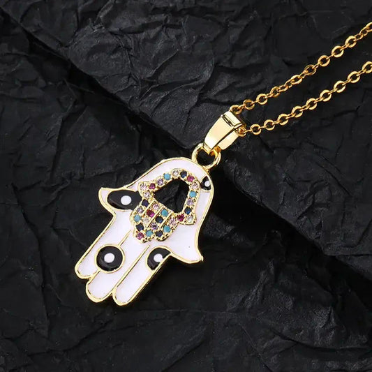 Premium Golden Hamsa Hand Necklace With Stainless Steel Chain