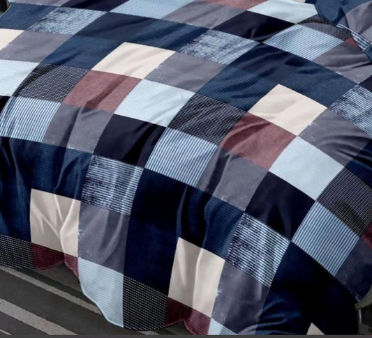 Blue Check Cotton Double BEDSHEET with 2 Pillow Cover