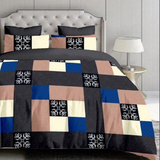 Elegant leaf design Checkered Double Bed Bedsheet with 2 Pillow covers