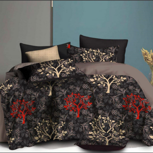 Attractive Brown and red leaf cotton Double Bed Bedsheet with 2 pillow Covers