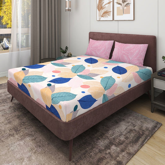 Floral Microfiber Bedsheet for a Double BedSet Includes 2 Pillow Covers (Elastic Fitted )