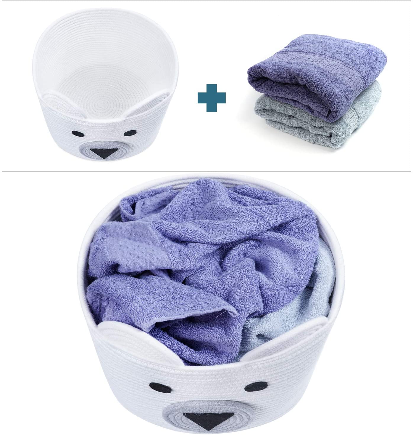 Small Bear Basket, Cotton Rope Basket, Toy Storage, White