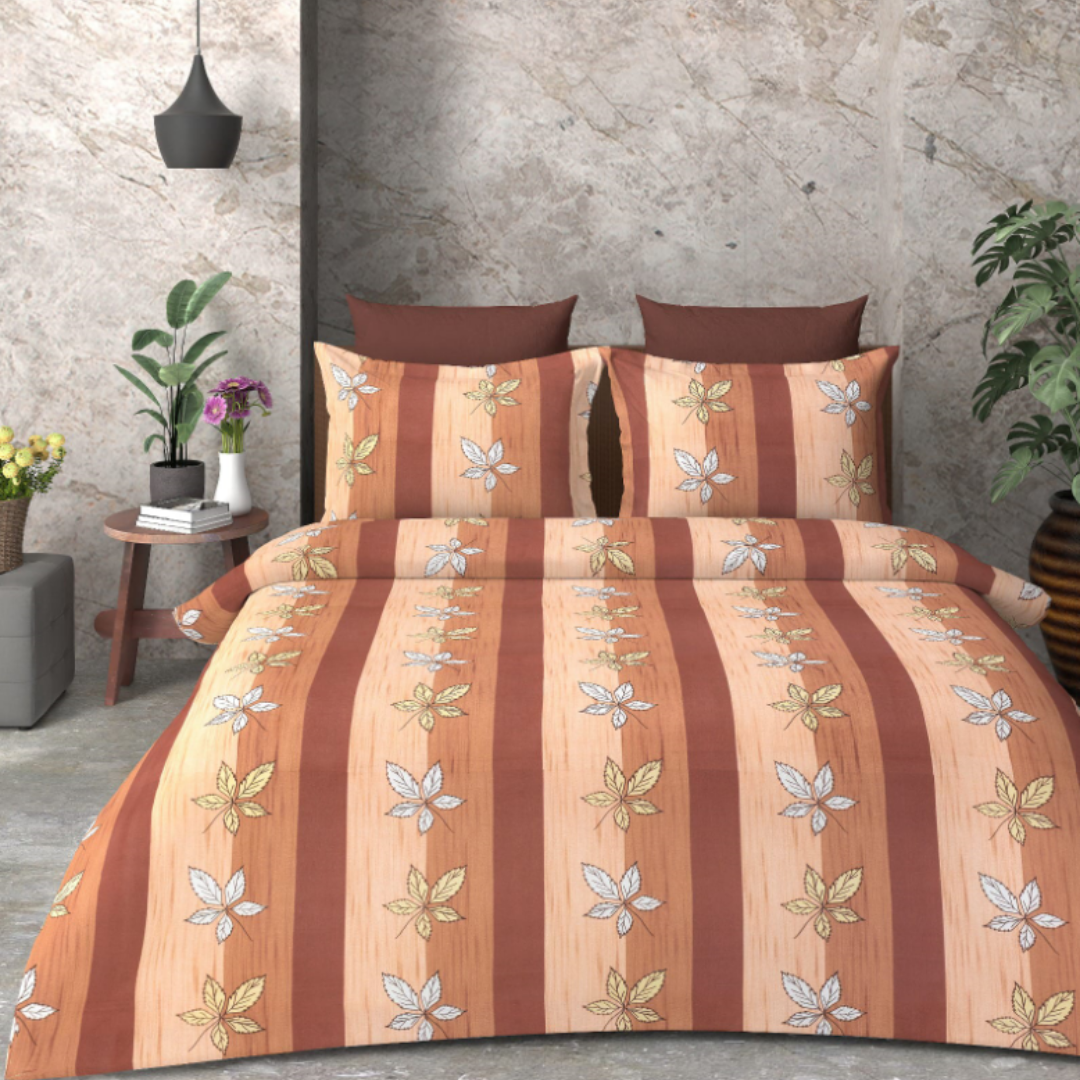 Beautiful Leaf Pattern Cotton Bedsheet with 2 Pillow Covers