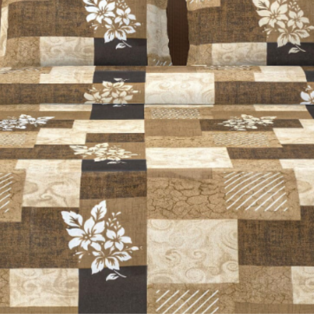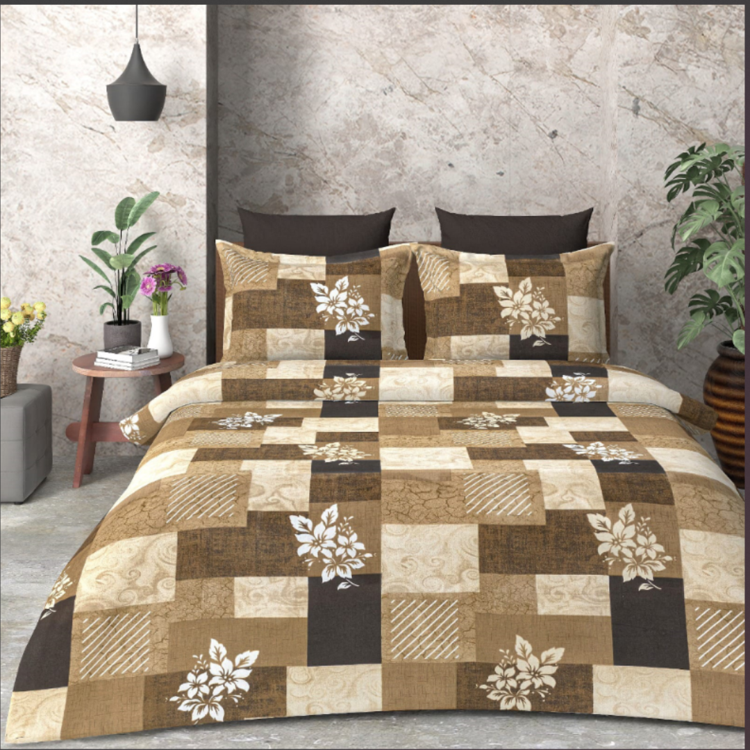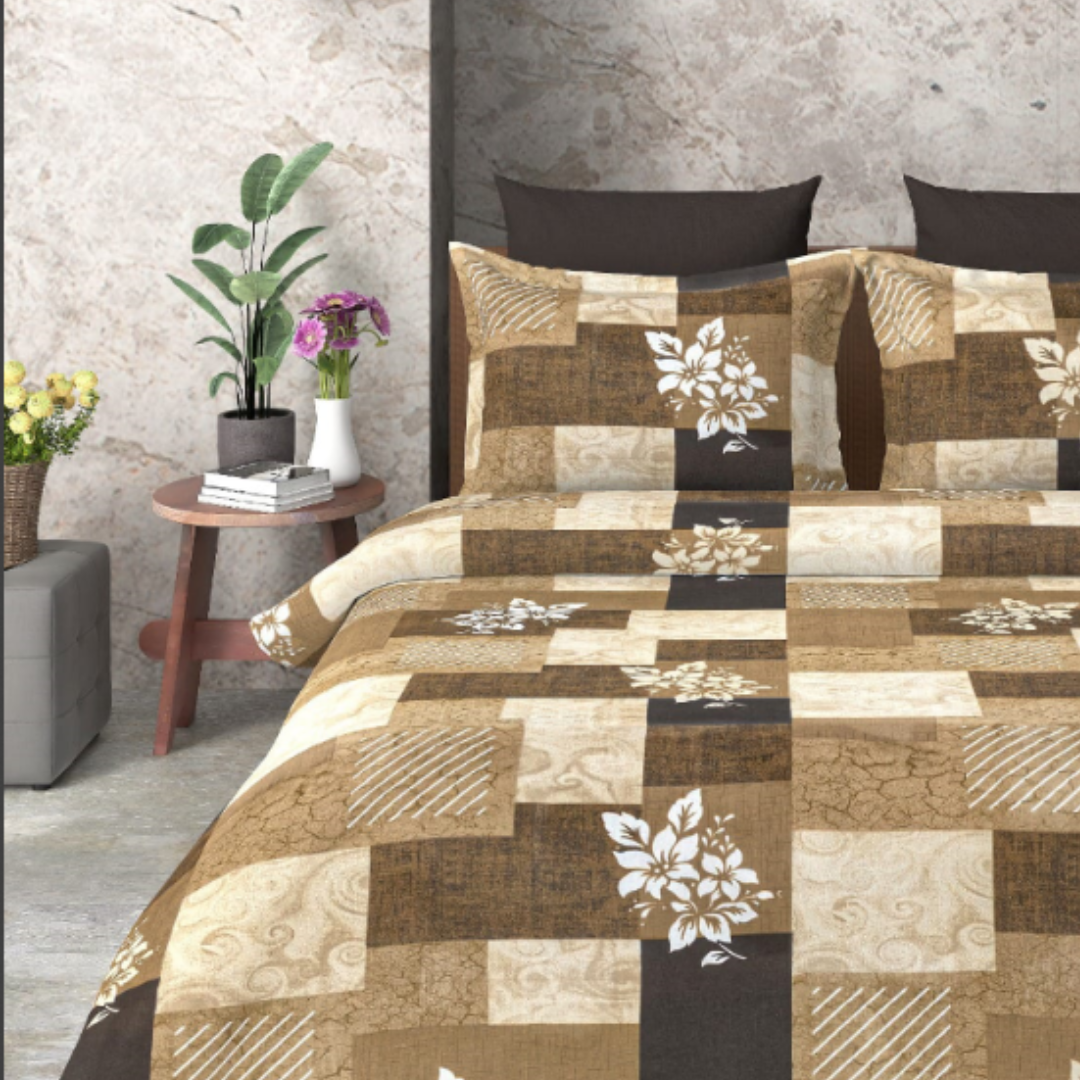 Black & Brown Floral pattern Cotton Double Bed Bedsheet with 2 pillow Covers