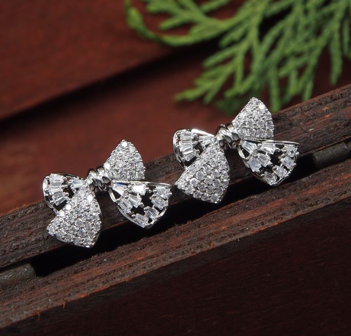 Bowknot Cubic Zirconia Korean Earring - KRNER 5125