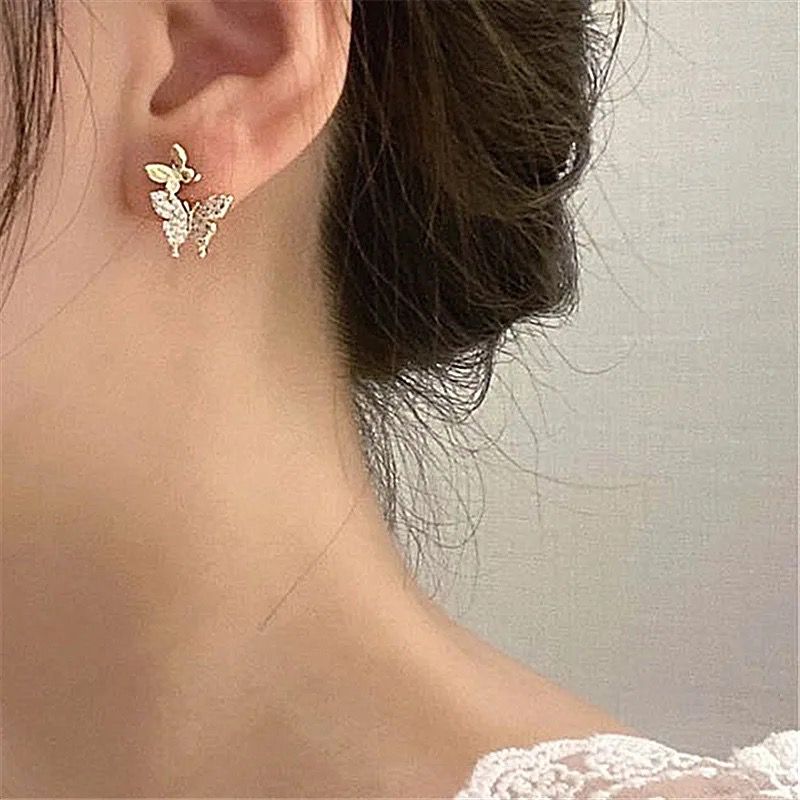 Korean earrings, butterfly earrings, cute jewellery , campus collection, needle threader earrings.