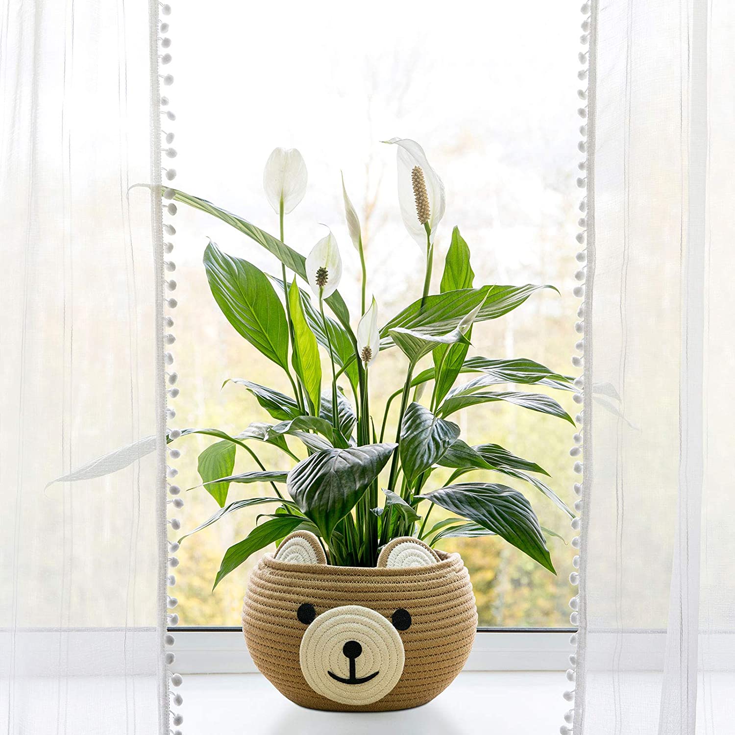 Cute Bear Round Basket - Cotton Rope Baskets in Living Room, Brown