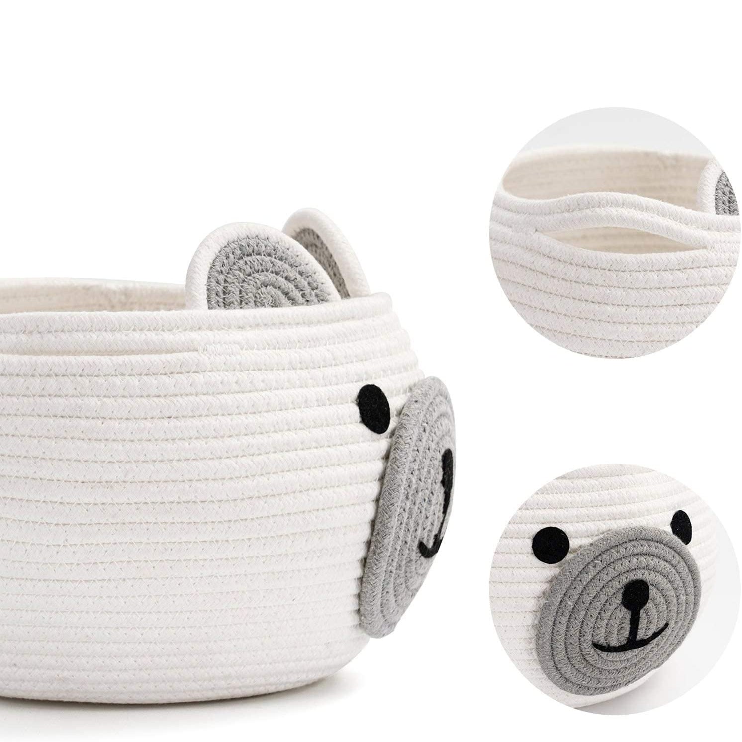 Cute Bear Round Basket - Cotton Rope Baskets in Living Room, White