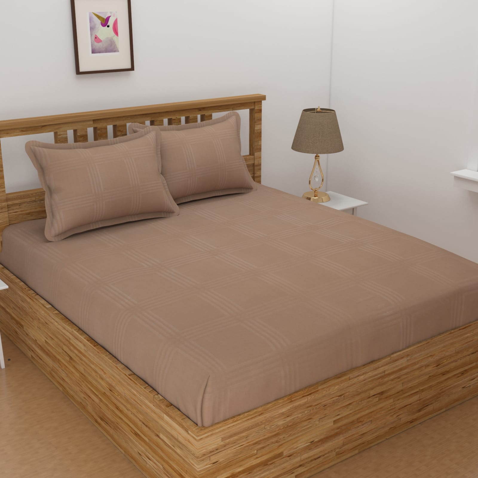 Dark brown Elastic Fitted Glace Cotton Plain Stripe Double Bedsheet with 2 Pillow Cover