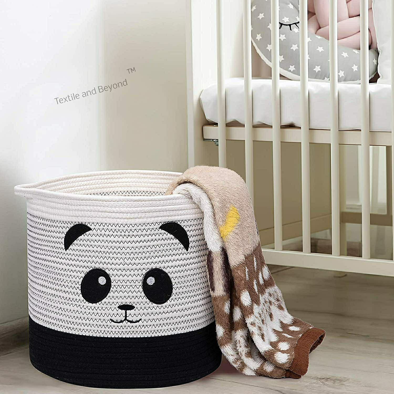Foldable boho cotton Panda organizer basket