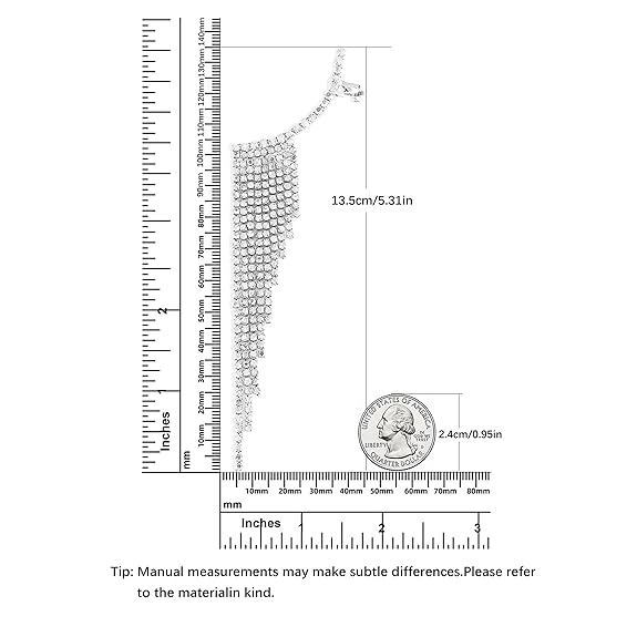 - Dazzling Rhinestone Fringe: Cascading rows of shimmering rhinestones fall from the ear like a waterfall, catching and reflecting every glimmer of light for an unforgettable sparkle.