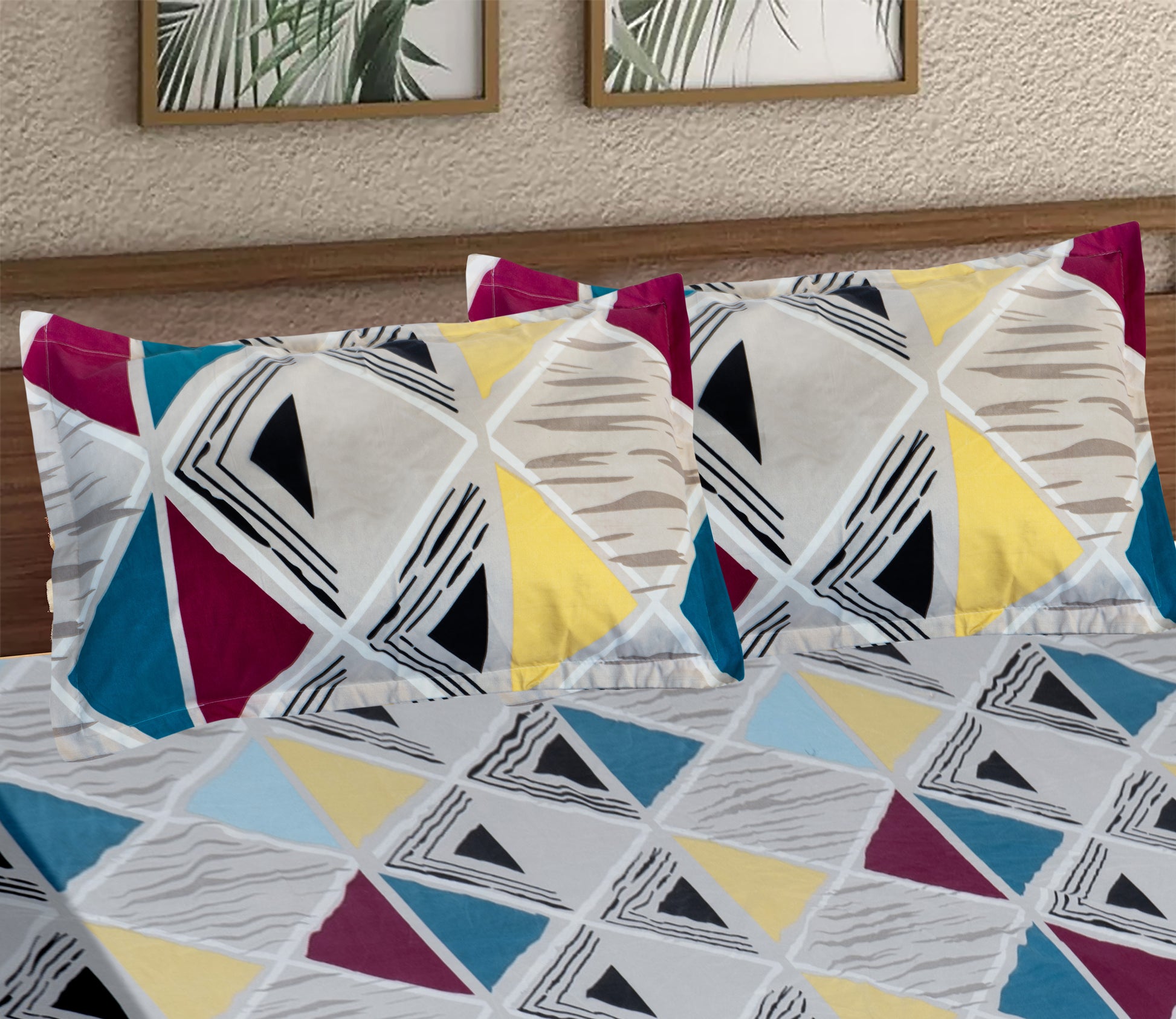 Grey Triangle King Size Double Bed Elastic Fitted Premium Bedsheet