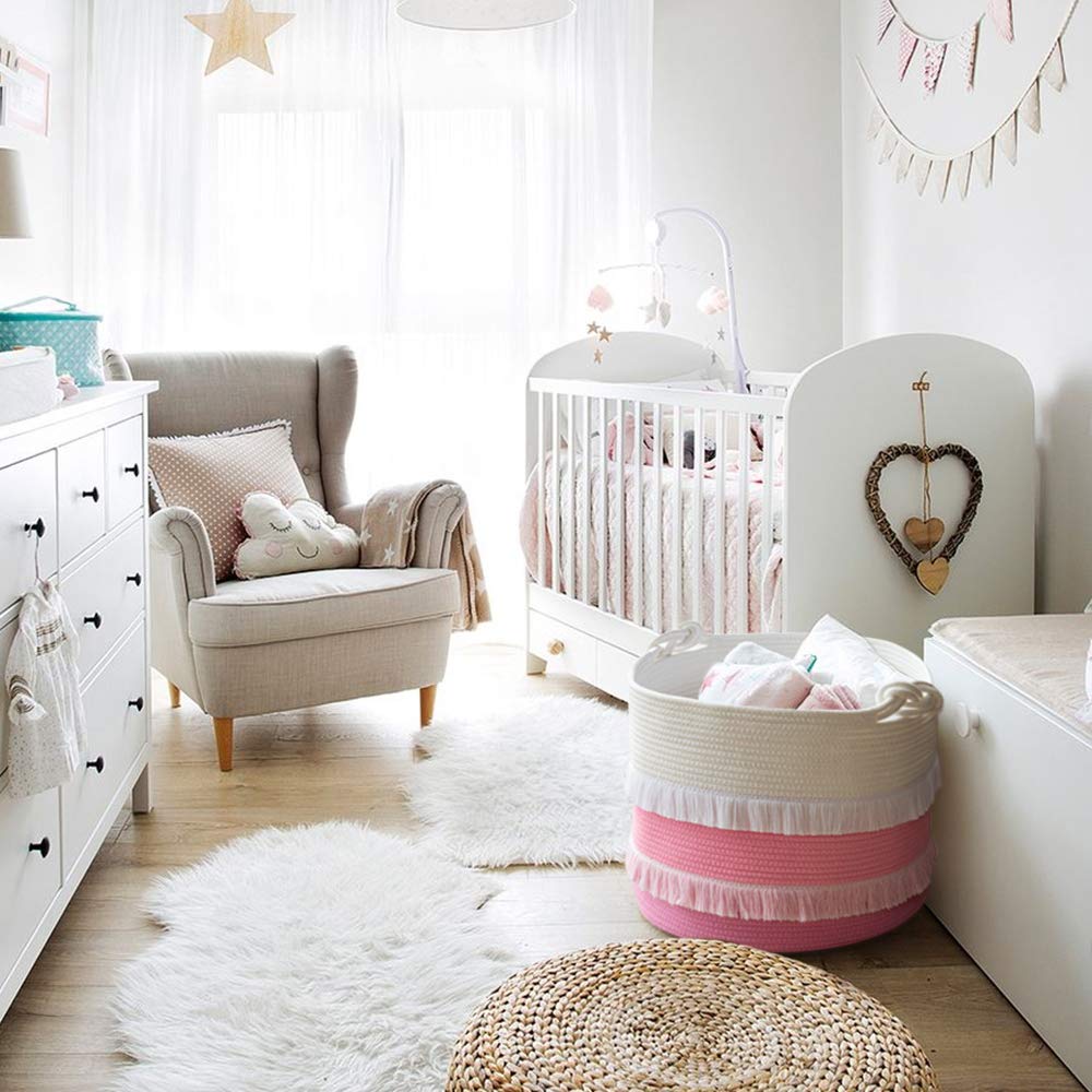 - KNOT TIE HANDLES: This storage bin has the most popular match nowadays with pretty knot accents as the handles; our baby laundry basket can easily be moved from room to room to store diapers, blankets, towels, toys, bibs, books, and so on