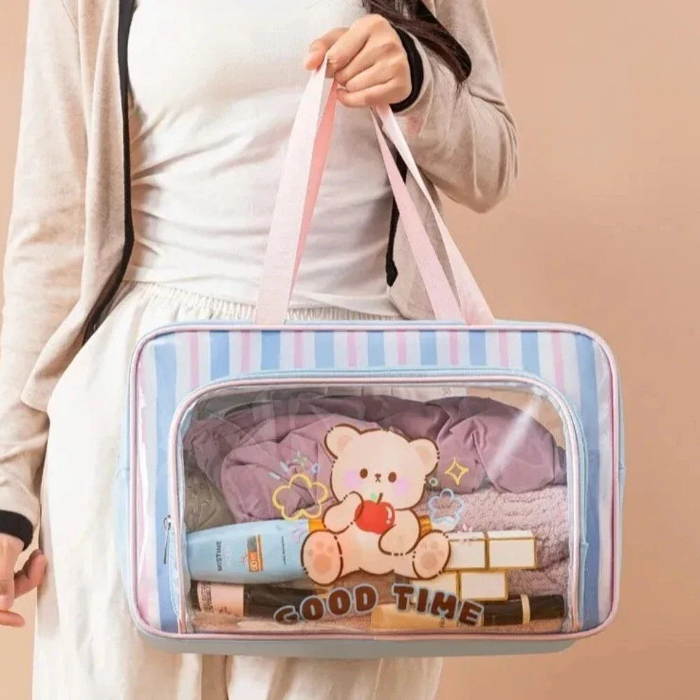 Large Waterproof Travel Duffel Bag | Cute Cartoon Storage Tote with Transparent Pocket | Random Color