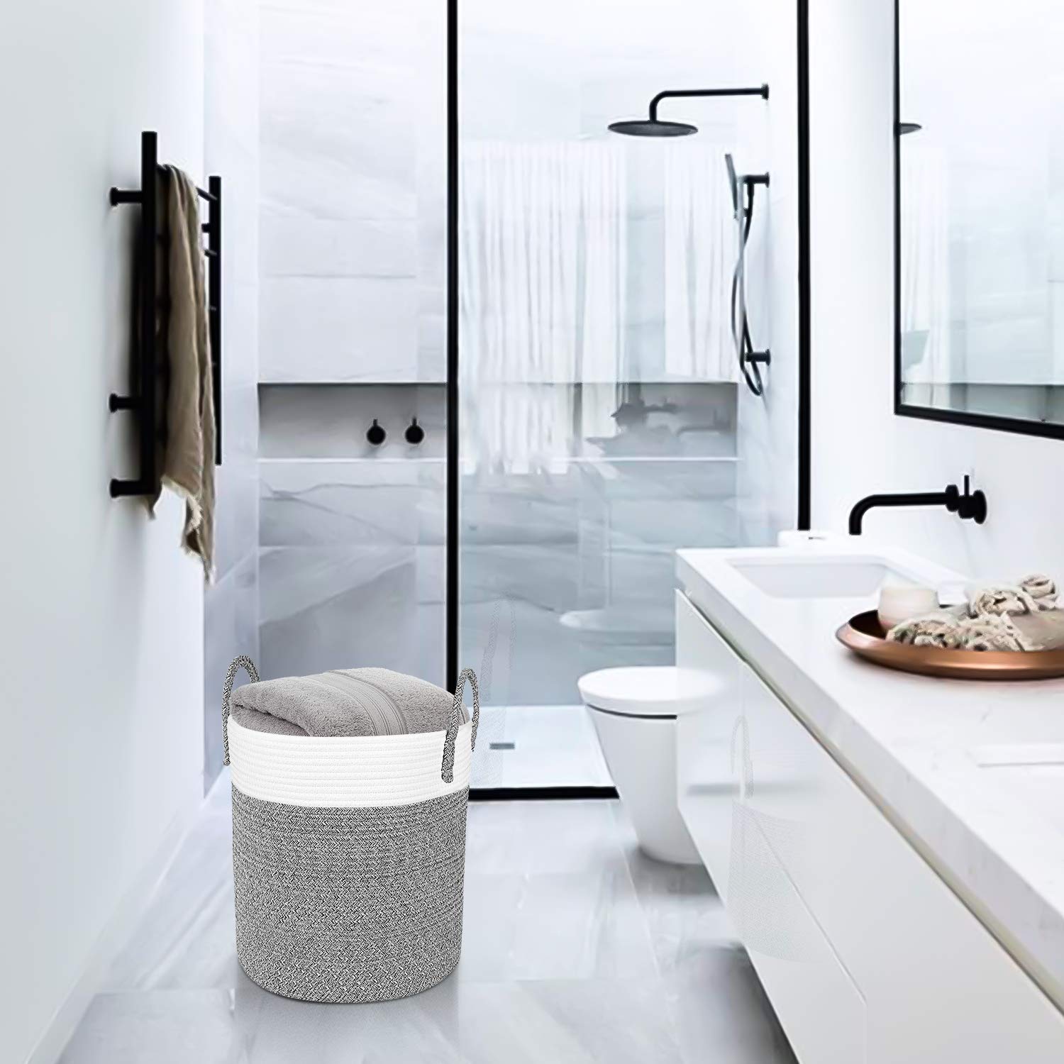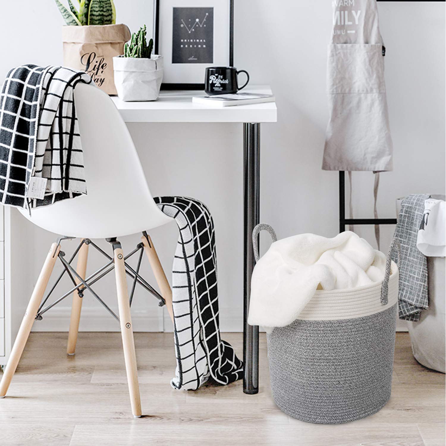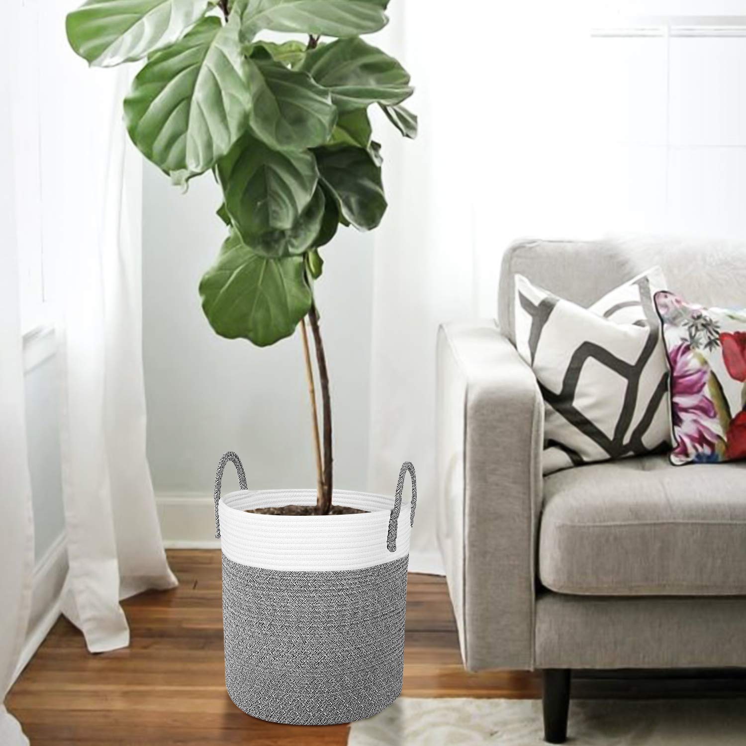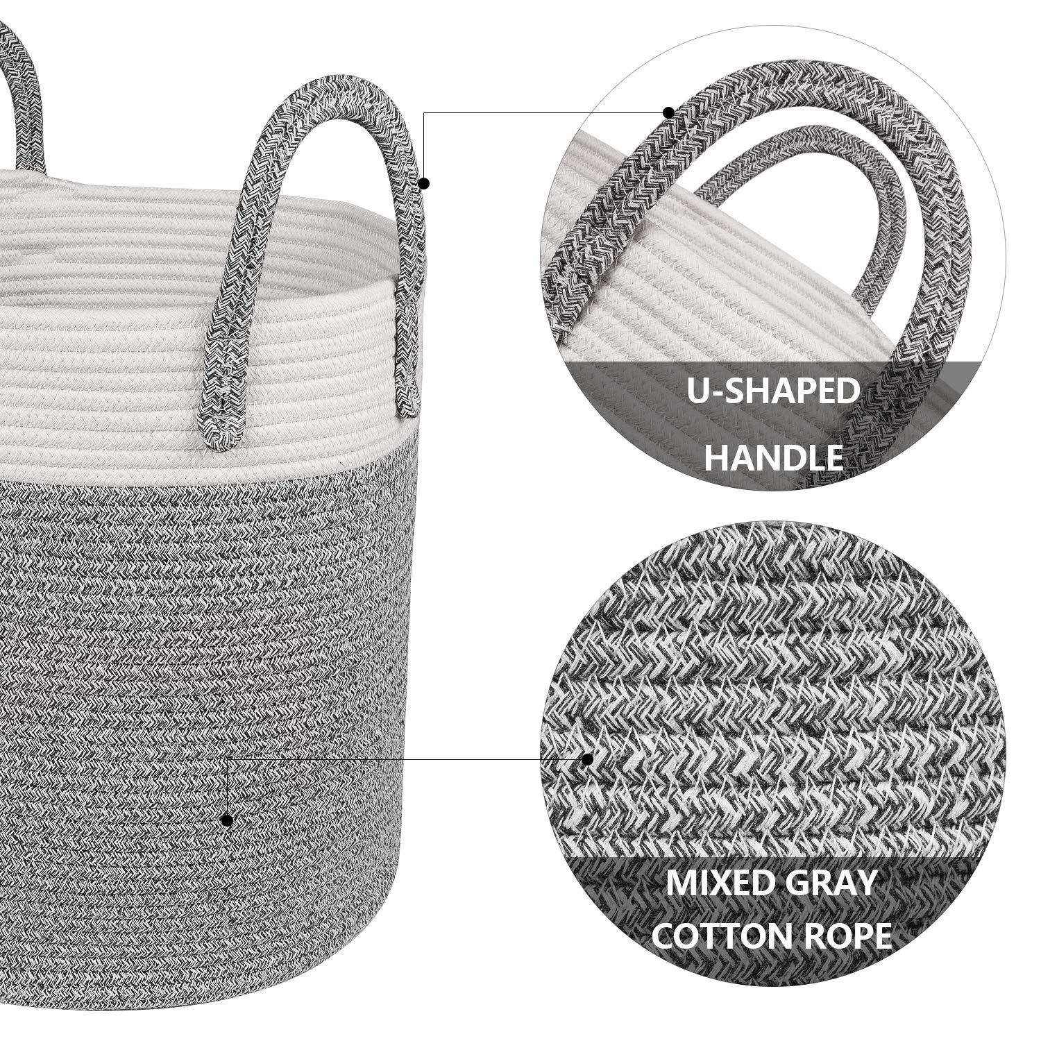 - ✔Guaranteed Great Material: All gray rope baskets use natural cotton coil rope, so these baskets are firm to hold heavy items and sturdy enough to stand up by itself, soft enough to be collapsible as well