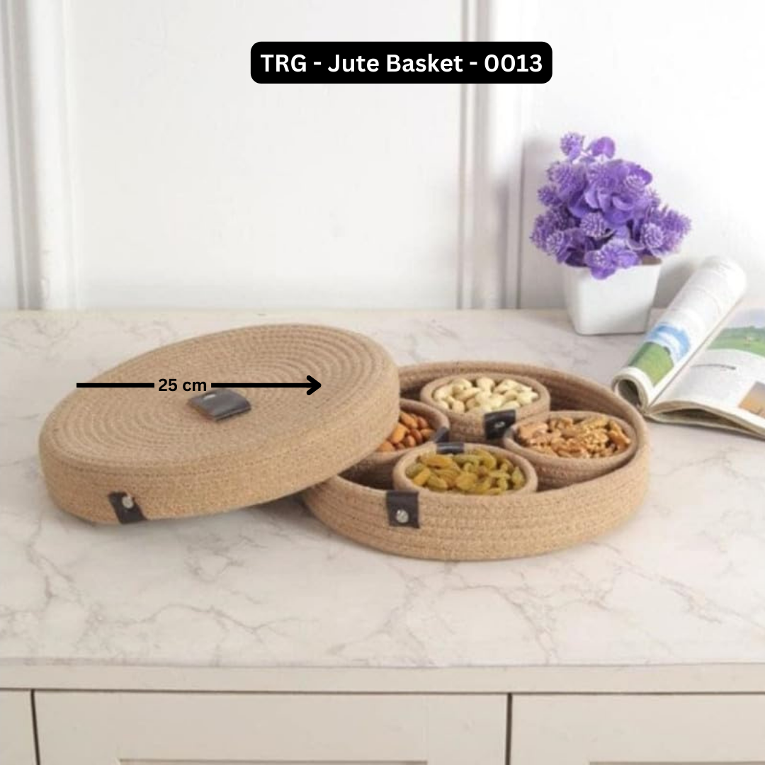 Bring home the perfect blend of nature and elegance with our Natural Cotton Rope Dry Fruit Storage Tray with 4 Bowls Set, and enjoy the beauty of organized living.