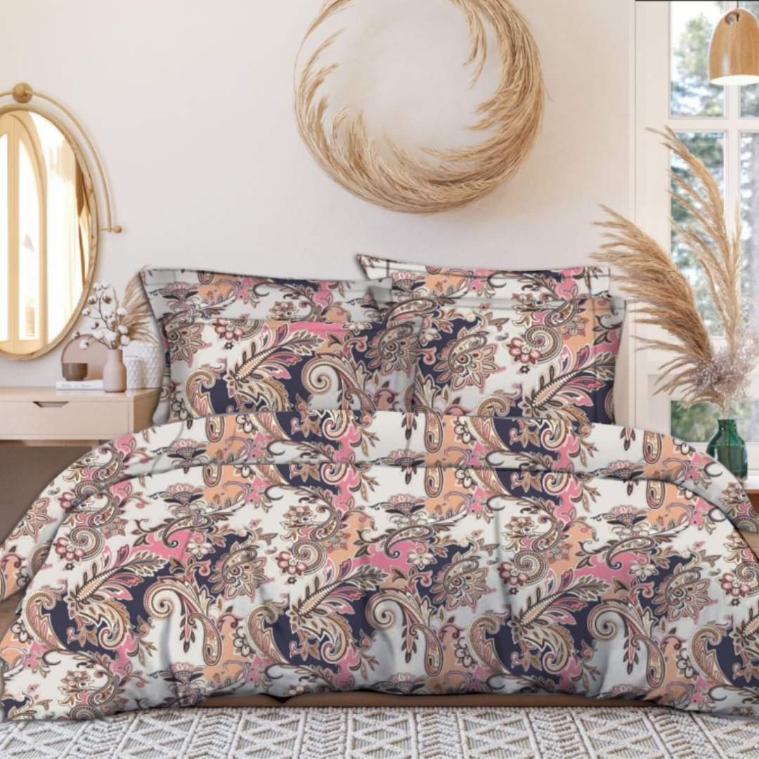 Multicolored 3D Printed Cotton Double Bed Bedsheet with 2 pillow covers