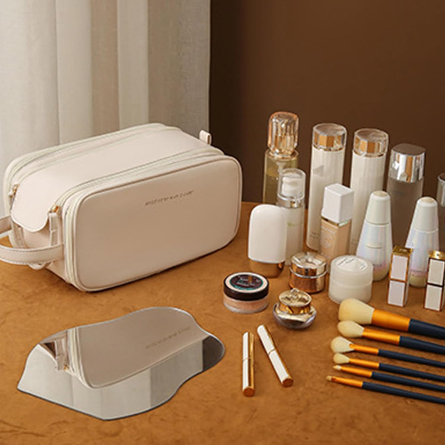- Spacious & Practical: The large main compartment provides ample space to store full-size bottles, palettes, brushes, and other beauty essentials. It's designed to hold everything you need without being bulky.