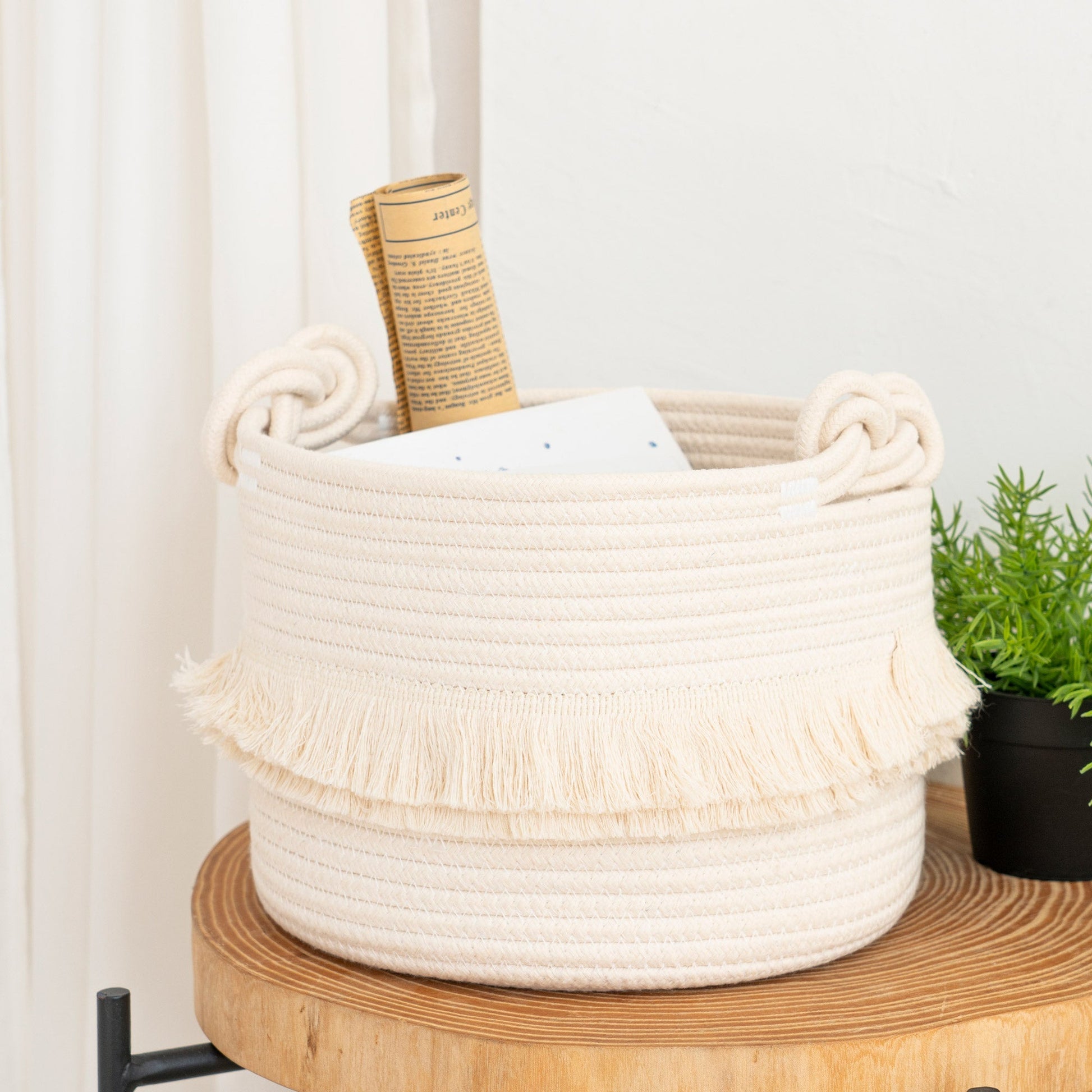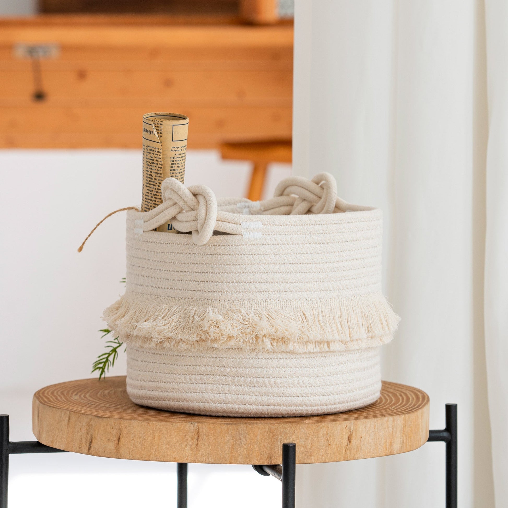 - HIGH QUALITY: Our storage basket is made from strong cotton woven rope; organic cotton rope, no chemicals, has good resilience, safe and healthy; this elegant, stylish white material is attractive and durable