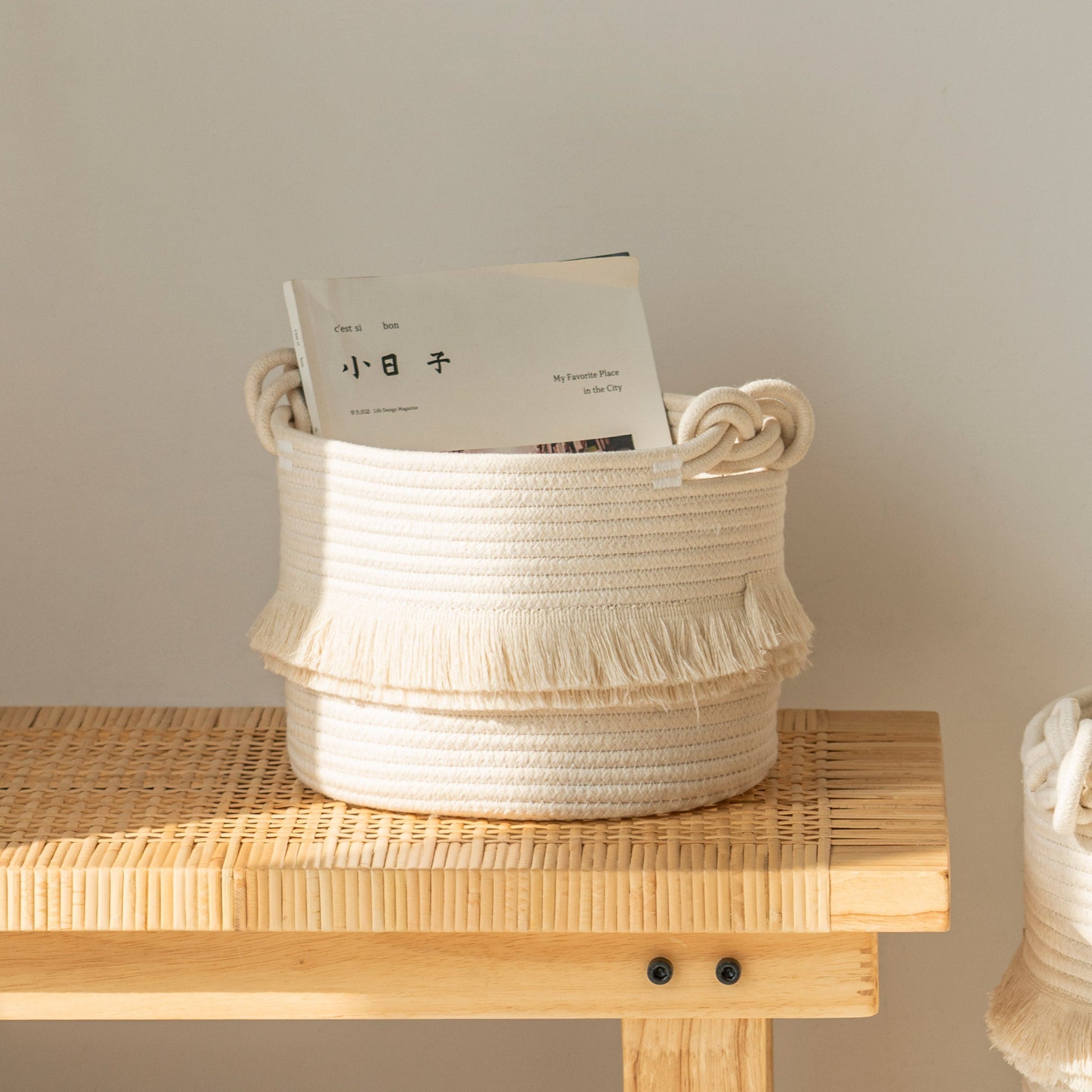 Small Woven Storage Baskets, Cute Tassel, Off-White