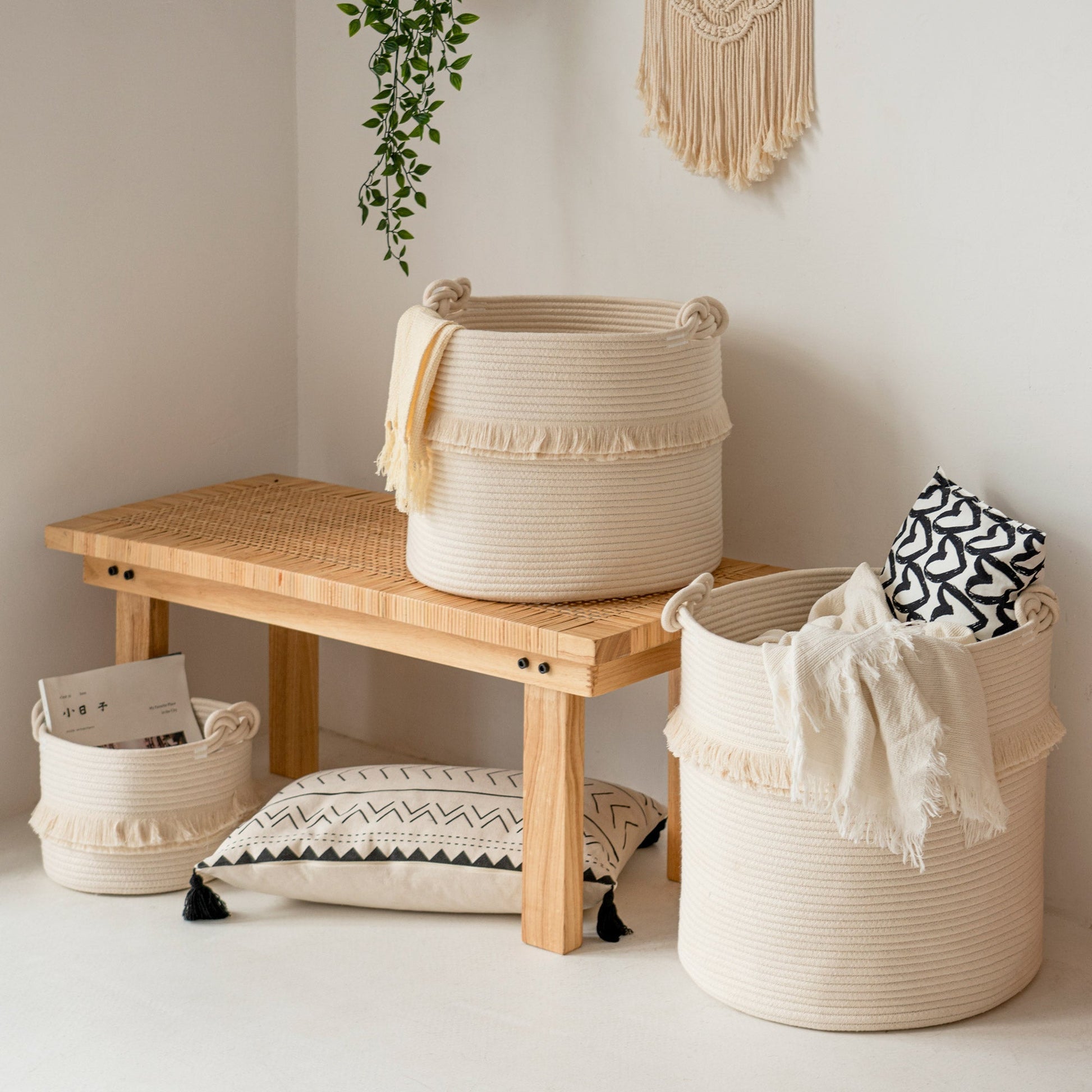- TASSEL DESIGN: Our hamper has two layers of tassels, which have great layering; teenage-style fringe is suitable for girl's room, it is also a cute home décor for the bedroom, living room & nursery