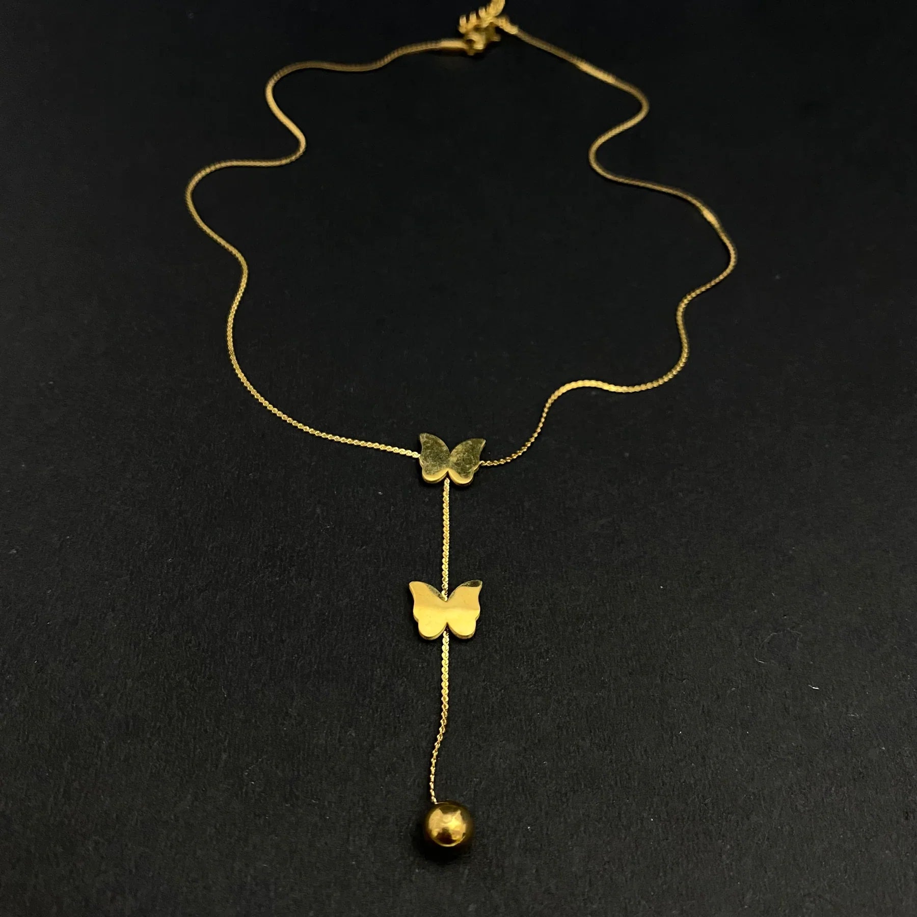 The Stainless Steel Golden Dual Butterflies Necklace is a beautiful and symbolic accessory that combines elegance with nature-inspired charm. Here are the key features and details you can expect from this type of necklace: